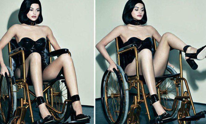 A sollevare le polemiche, oltre alle immagini di una Kylie Jenner in abiti da “amante del sadomaso”, sono stati soprattutto il fatto che la bella diciottenne posasse seduta su una sedia a rotelle e con un’espressione del tutto alienata e passiva, il tutto per un servizio fotografico per Inerview Magazine.