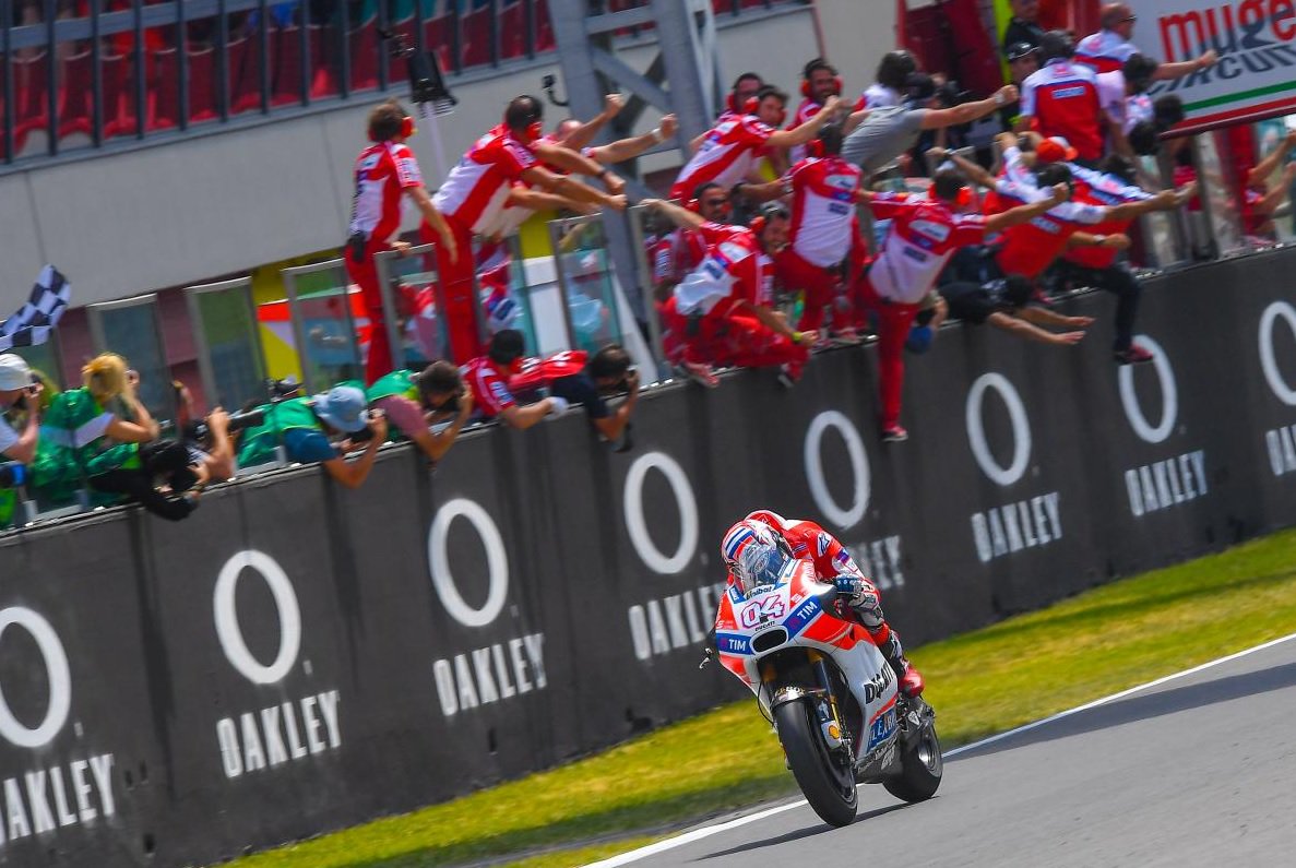 Il pilota italiano della Ducati, Andrea Dovizioso, ha vinto il Gp di Catalogna, settimo appuntamento di MotoGP stagione 2017. Il pilota di Forlimpopoli (nella foto di copertina mentre taglia il traguardo) ha bissato il successo di domenica scorsa al Mugello. Al secondo posto Marquez che precede Pedrosa e Jorge Lorenzo. Deludenti le Yamaha di Valentino Rossi (ottavo) e Maverick Viñales (decimo), leader del Mondiale. Prossimo appuntamento il 25 giugno in Olanda con il Gran premio Motul TT Assen.